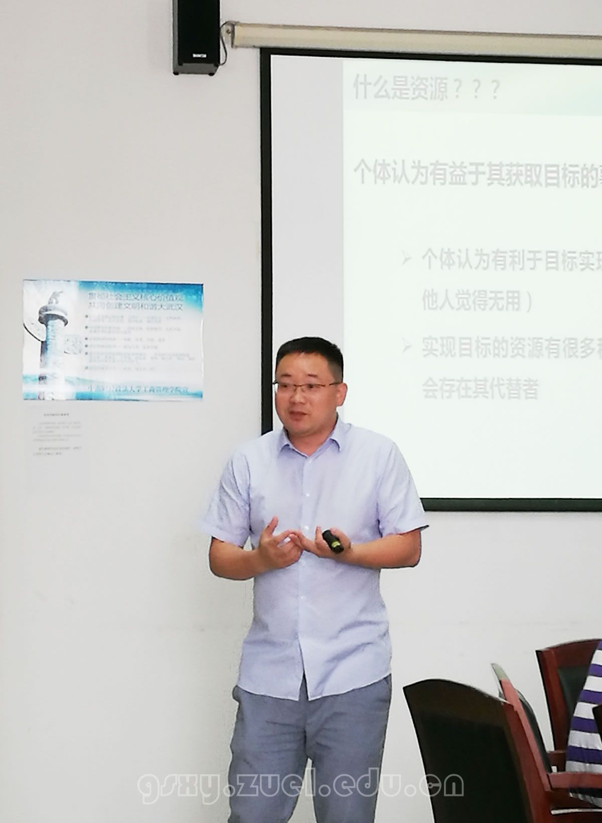首先,刘老师提出问题——什么是资源?接着指出,资源之所以成为资源,核心在于此资源具有一定的价值,并提出了资源的定义,即资源是个体认为有益于其获取目标的事物,分为实物资源、身份资源、个人资源和动机资源四种类型。然后,刘老师对资源保护理论中重要的两大原则进行了介绍:原则一指出资源损失比资源获得更重要,在人们损失或获得相同数量的资源的情况下,与获得资源相比较,人们遭受资源损失会对他们产生更大的影响。在遭受资源损失的情况下,获得资源会变得更加重要。原则二指出为了防止资源损失、从资源损失中恢复,人们必须投入资源。