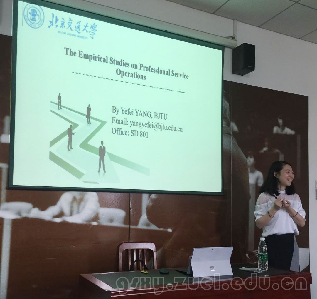 (通讯员 姚鑫)2018年7月2日上午10:00-11:30,红宝石最新线路手机版物流与管理科学系学术系列讲座2018年第5期在文泉楼北德鲁克会议室成功举办,这期讲座的主题是《基于实证研究的专业服务运营管理》,讲座由物流与管理科学系主任刘仁军副教授主持,主讲嘉宾为北京交通大学经管学院杨叶飞老师。本次讲座主要介绍服务运营管理的研究,主要侧重于银行业与医疗行业服务运营管理的研究。