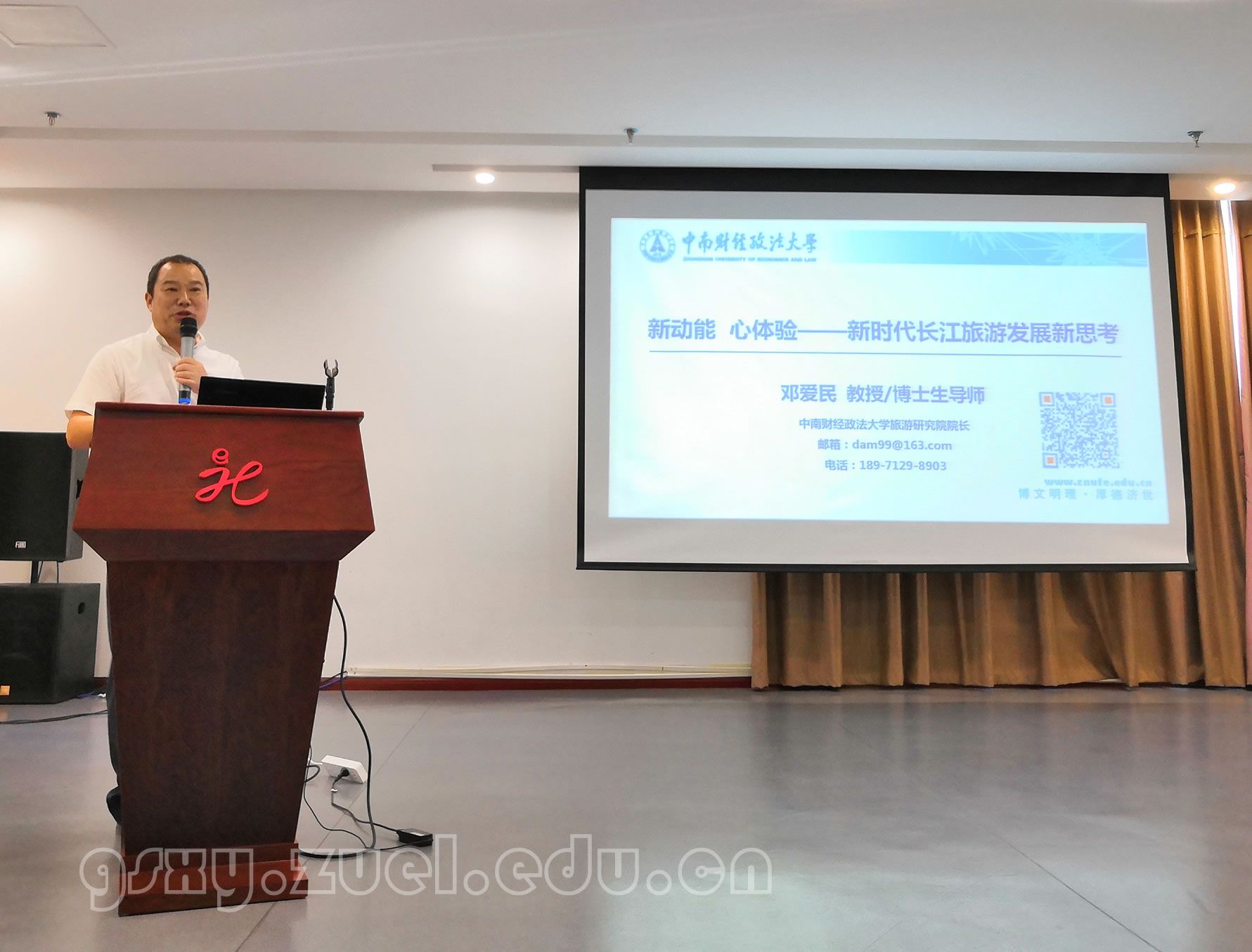 2018年8月25日,我院博士生导师邓爱民教授应湖北省旅游学会和湖北省旅游重点人文社科基地邀请参加“2018年湖北省旅游学会年会暨创新发展论坛”,并作为首位讲演人为260余名来自全省多所高校旅游研究院负责人、各市区旅游发展委员会领导、企业代表及媒体作主题演讲。
