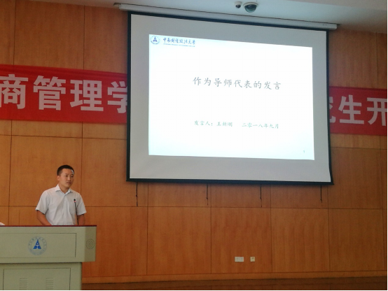 随后,我院研究生导师代表王新刚老师为同学们分享心得,王老师结合营销管理系的团队培养方案给新生们提出三点建议:一是平衡学习,健康和生活;二是坚持运动、读书、帮助他人;三是学会对话、观察和感悟。最后祝愿同学们在研究生阶段遇到更好的自己。