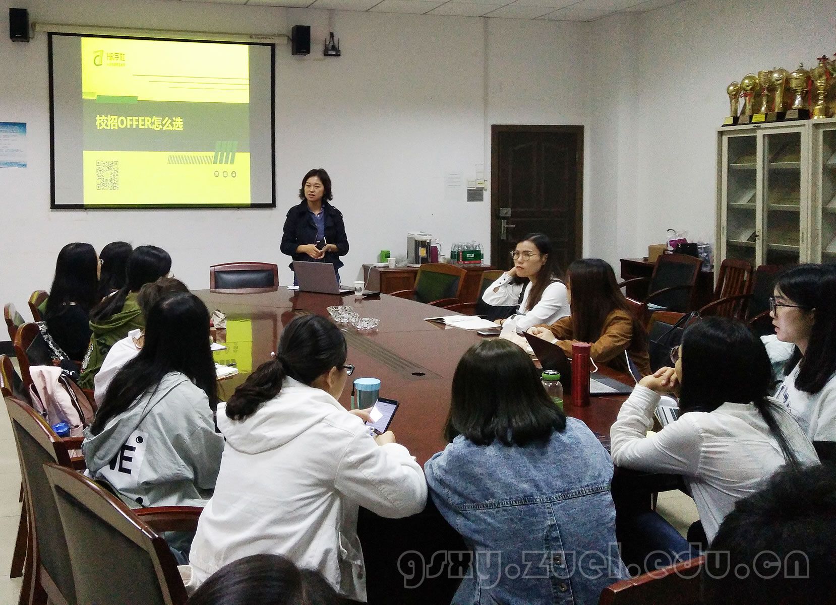 (通讯员:黄婧;摄影:何雪婷)2018年10月9日晚上7时,由红宝石最新线路手机版营销管理系举办的“黄金悟研习社”第四十期活动在文泉北楼会议室成功举办。本次研习社的分享者是杜为尔猎头&HR学社创始人,人才甄选/人才发展/人才管理专家,华中科技大学MBA,两次成功创业,高端人才领域的领导者苏珊,此次分享的主题是“猎企创始人教你校招offer如何选择?”。参加本次活动的主要是来自营销管理专业及电子商务专业的本科生、硕士研究生、老师等。