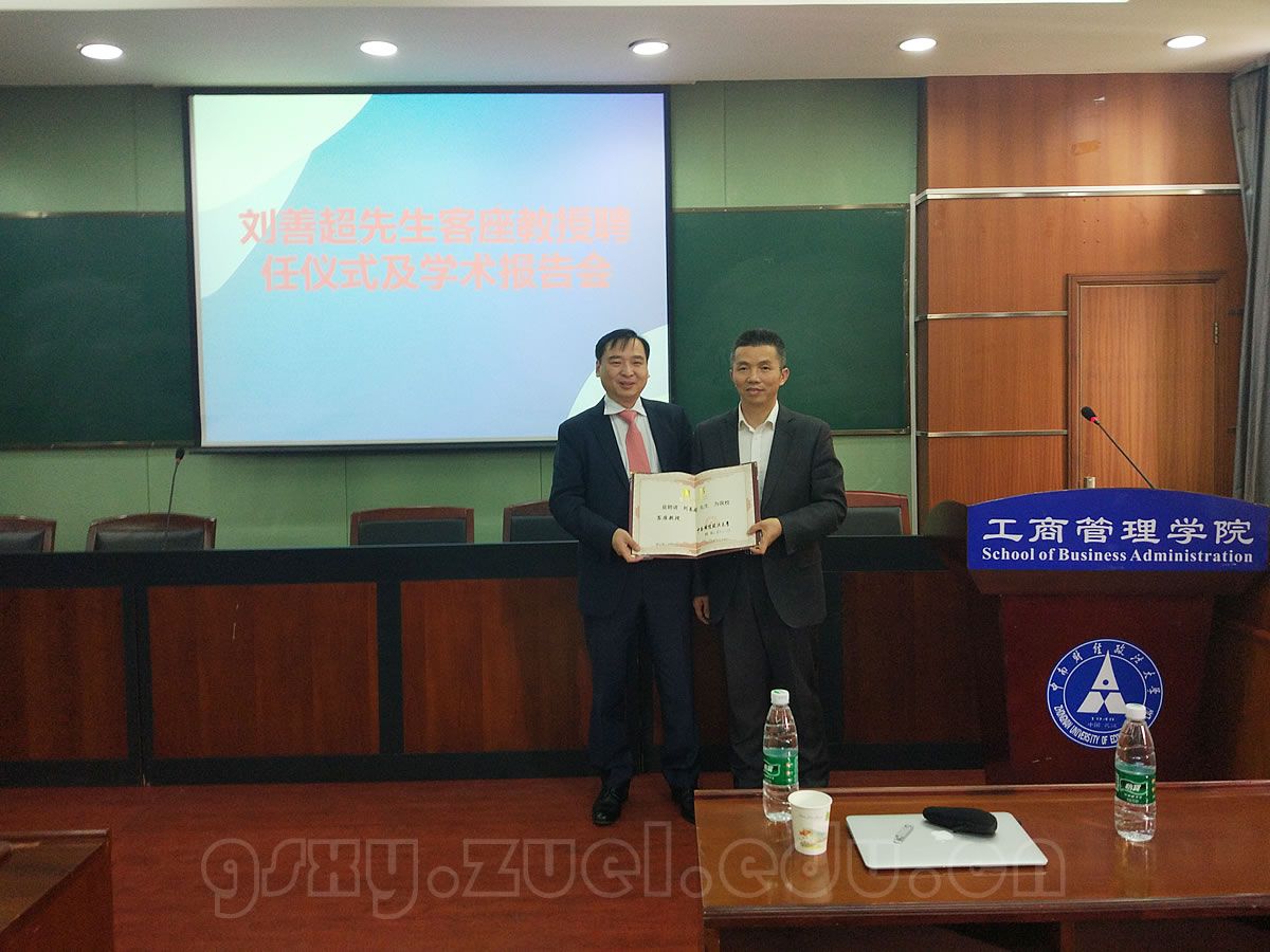 人力资源管理系主任赵琛徽教授代表师生热烈欢迎刘善超先生加入中南财经政法大学,并受学校和学院委托,向刘善超先生颁发了中南财经政法大学客座教授聘书。赵琛徽教授说,聘请刘善超副总裁为我校的客座教授,是我校我院特别是人力资源管理专业产学研融合培养人才的重要举措,