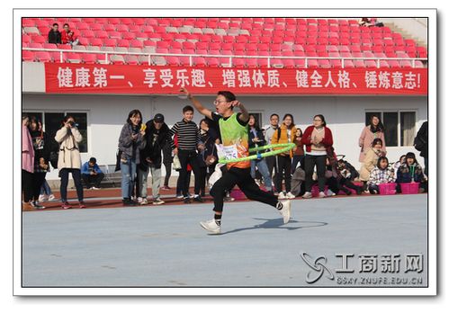 呼啦圈在腰间旋转,脚步在快速向前迈进,两者兼具,可谓难哉。在这个向来女子表现出色的项目中,我院男子运动员鲁梦杰却表现不俗,技巧熟练,不输女子呼啦前进中运动员的表现。一声令下,他如旋风般直冲终点,锁定冠军席位。