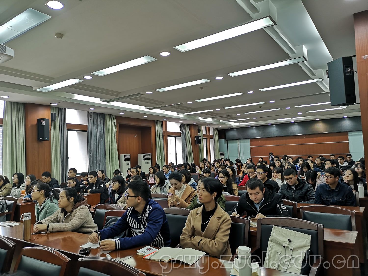 (通讯员:程相惠)2018年11月15日上午,在文泉北楼506会议室,武汉金百瑞科技股份有限公司总经理周起瑞先生回母校举办讲座并与电子商务专业教研室签订本科生实习基地协议。本次活动由营销管理系、电子商务研究中心主办,电子商务专业专任教师姜璇博士主持,刘新燕副教授、彭红副教授、陈敬文博士、王田博士和来自电子商务专业的本科生、研究生以及其他院系学生共计百余人参加了此次活动。