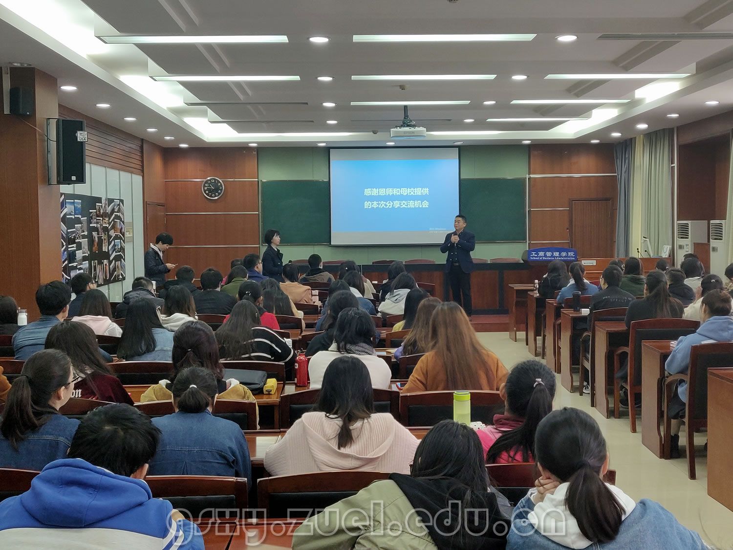 本次活动讲座主题为“就业、择业与创业”,在讲座过程中,周总回忆了自己2000年至2004年在中南财经政法大学电子商务专业本科学习的经历,强调管理专业的学生应该重视社会实践。在实践中总结经验,用理论去梳理经验,不畏失败,勇于尝试。周总着重分享了他在创业过程中的三个阶段:从就业型创业、择业型创业到“创业”型创业,并结合每个阶段的经验体会给学生们进行了分享。