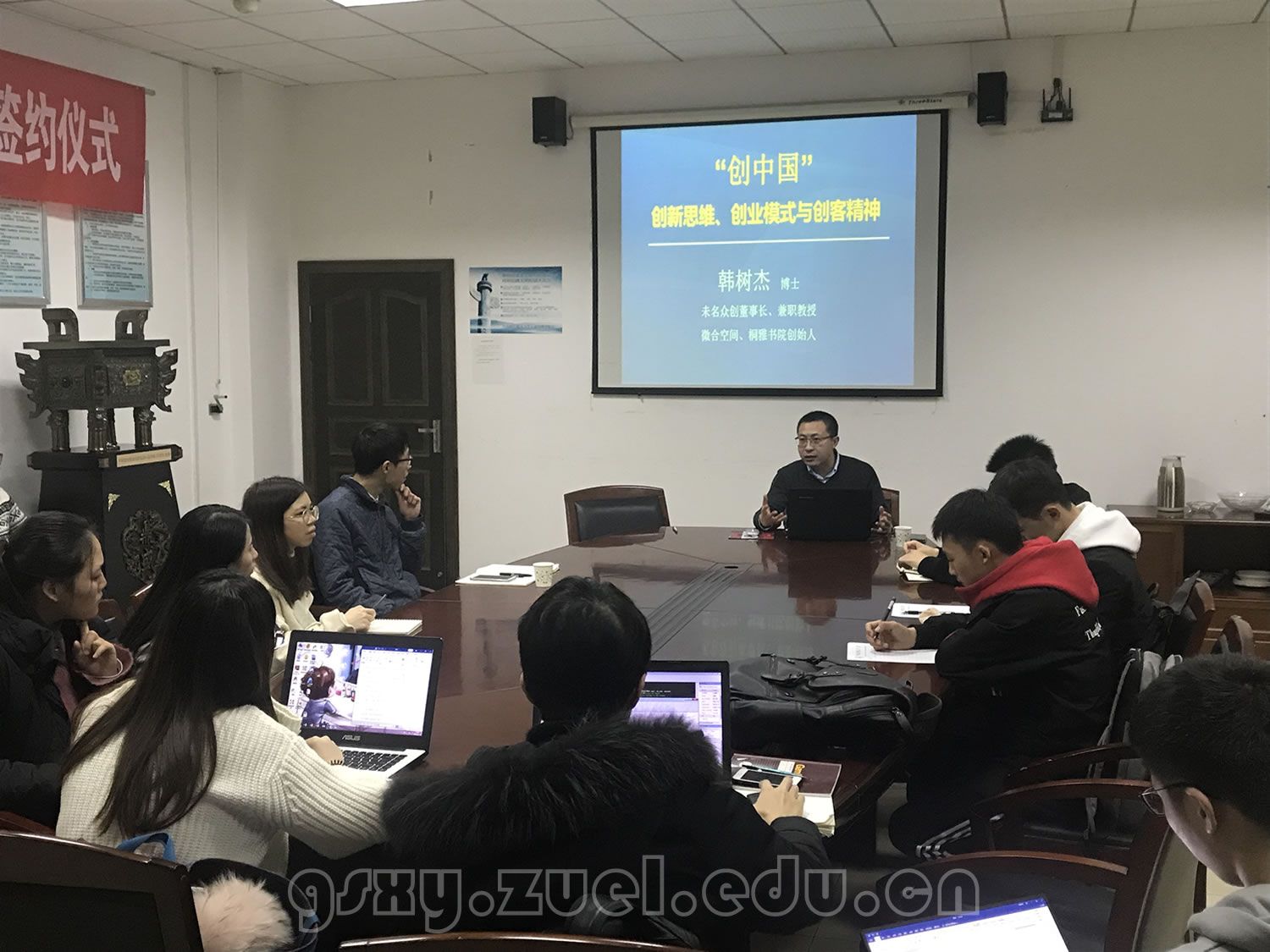 (通讯员:钱程)2018年12月18日晚上七点在文泉北楼407会议室,微合空间创始人、董事长兼CEO韩树杰博士莅临我院,以“互联网背景下高校创业模式与创新方法论”为主题进行了学术讲座。韩树杰是北京大学光华管理学院博士后,著名商业模式专家与创业导师,北大1898咖啡馆联合创始人,兼任学术期刊《中国人力资源开发》编辑部主任。本次学术讲座由红宝石最新线路手机版人力资源管理系和南湖人才开发公司主办,由人力资源管理系郭琨老师主持,本院博士生、硕士生和本科生参加了此次讲座。