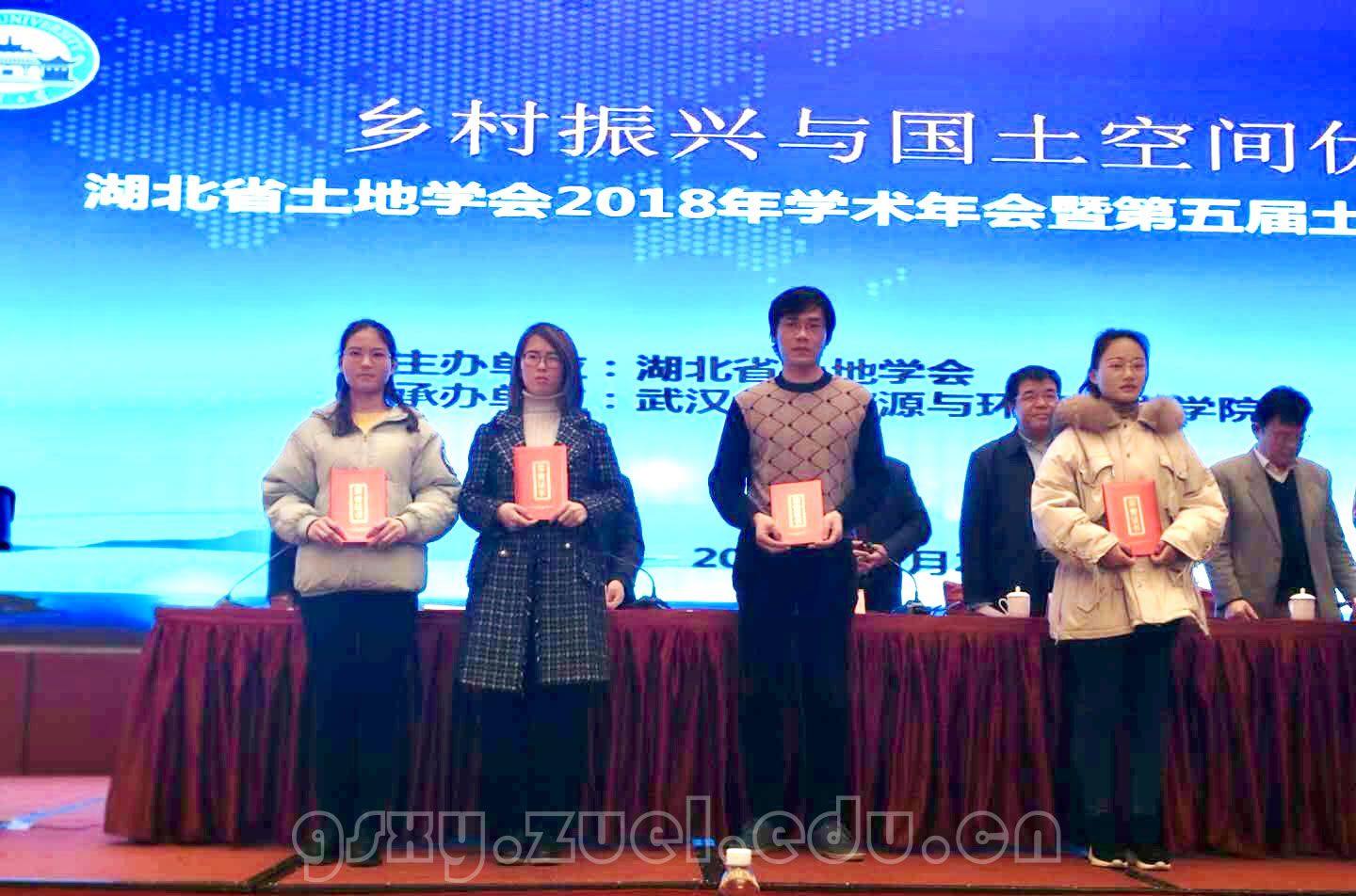 会议交流环节,我院教师宋敏副教授受邀作了《农地经营规模与农户生产效率关系研究》学术报告。土地资源管理专业共计六名硕士生受邀在分会场做了学术报告,其中黄玉浩同学做了《集体经济对城镇化中的失地农户家庭发展能力影响——基于宜昌和鄂州两个村的比较》学术报告,刘紫茵同学做了《乡村振兴背景下村级土地利用规划编制研究》学术报告,王聪聪同学做了《基于效率和生命周期理论的湖北省产业用地差别化管理研究》学术报告,杨升做了《湖北省人口-土地空间匹配性及其优化路径研究》学术报告,硕士生付洒做了《基于数据挖掘的土地城镇化质量研究》学术报告,阮羿佑做了《基于趋势面分析法的耕地质量时空变化分析——以长泰县为例》学术报告。在各分会场中,我院参会硕士生还同众多与会代表进行了广泛而深入地学术探讨。