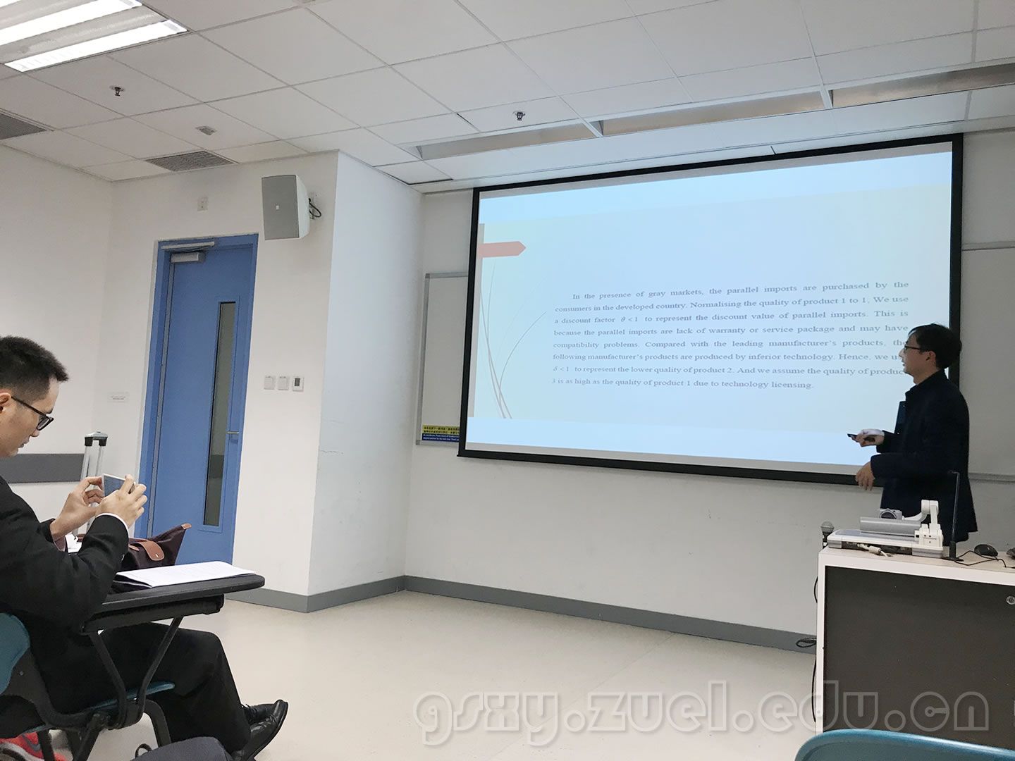 1月6日,李海副教授分享了工作论文“The strategic interplay between technology licensing and parallel importation”的报告,并和同行学者就国际供应链管理中的平行进口和技术许可等学术问题进行了交流。