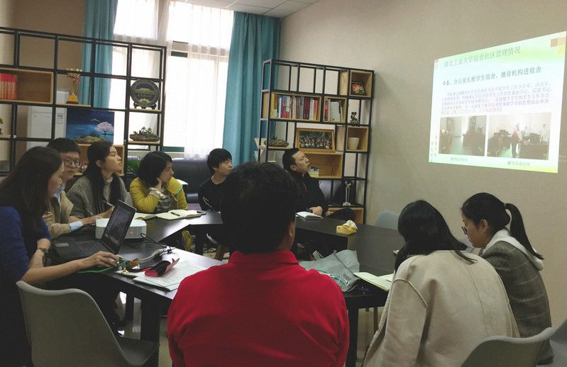 李芳副书记带领辅导员对宿舍网格化管理进行了深入探讨。她解读了湖北工业大学“德育五进宿舍”宿舍社区管理情况,重点介绍了其“办公室扎根学生宿舍,德育机构进宿舍;辅导员入住学生宿舍,德育队伍进宿舍;活动阵地建在学生宿舍,德育阵地进宿舍;主题教育深入学生宿舍,学生活动进宿舍;主流文化渗透学生宿舍,文化建设进宿舍。”接着,从住宿形式、社区人员配备以及宿舍文化等多个方面对比了湖北工业大学、华中科技大学等兄弟高校宿舍社区管理情况。她表示,“学生宿舍网格化管理提倡辅导员入住学生寝室,其实质就是要求辅导员要始终围绕学生、关照学生、服务学生。”辅导员们对我校宿舍网格化管理模式方案进行了讨论。