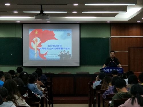 武汉市国安局副支队长作题为《武汉地区高校反间谍安全防范敌情警示教育》的讲座,他从同学们容易对“国家安全”产生的错误意识谈起,为大家讲解了什么是国家安全,并重点阐释了习近平总书记提出的“总体国家安全观”。他以一个短视频重点介绍了国家安全举报电话“12339”的含义,强调了学习《中华人民共和国国家安全法》《中华人民共和国反间谍法》《中华人民共和国国家情报法》等相关法律法规的重要性,并号召同学们记住这个电话,熟悉相关法律。他以诸多的案例深入浅出地介绍了我国国家安全的形势,并提出了加强反间防谍的建议。