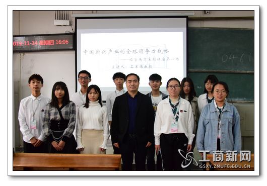 (通讯员 许秀峰)为帮助我院学子们更好地了解我院学科学习与研究运用方向,启迪同学们的专业学习思维,红宝石最新线路手机版学生学术科研中心于11月14日14:00在南湖校区文澜楼210教室举办“经管共商”系列主题讲座第一场——中国新兴产业的全球领导力战略。我院工商管理系主任石军伟教授担任本次讲座主讲人,18级年级主任高筱卉老师出席了本次讲座。