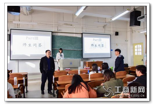 在最后的师生问答环节中,同学们踊跃提问,就拼多多与淘宝、京东的竞争、我国跨国公司的持续创新等问题提出疑问,石教授耐心解答,现场气氛活跃。