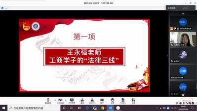 会议第一项,法学院王永强老师为同学们讲授了“法律三线”。王永强老师从法律的定义出发,讲解法律对于工商学子的意义:法律是人生的“底线”,事业的“天线”,也是科研与实践的导线。王老师指出,复合和融通才能导向新的天地,举办此次项目的正是培养兼具经管智慧和法治信仰的工商管理复合型、应用型、创新型人才。随后,王老师针对参与本次法商复合型拔尖人才实践项目的四支立项队伍的实践课题进行了专业的解读,为同学们的实践探索起到了良好的思维引导作用。最后,王永强老师希望同学们能“法商相融、侠行天下”,“侠行天下、无往不胜”。
