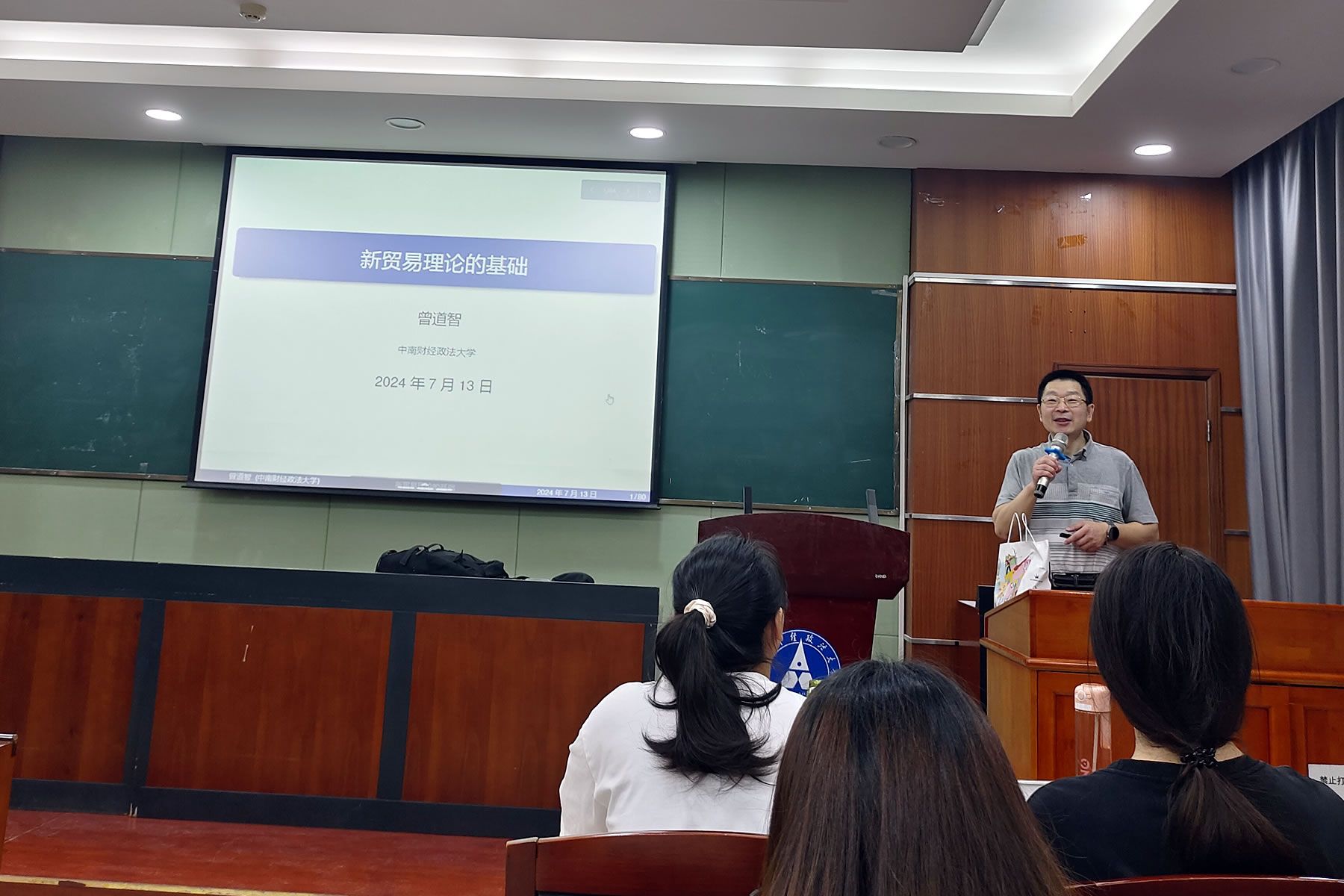 2024年7月13日至14日,红宝石最新线路手机版经济贸易系2024年暑期小学期国际学术前沿课程第五讲和第六讲在文泉楼506会议室顺利进行。空间经济学领域具有国际影响力的华人经济学家、日本东北大学教授、博士生导师曾道智教授围绕新贸易理论的背景、CES效用函数、Krugman的一般均衡框架、新贸易理论的发展、福利分析、Non-CES效用函数和政策分析等内容,为经济贸易系2021级和2022级本科生、部分硕博生及青年教师授课。