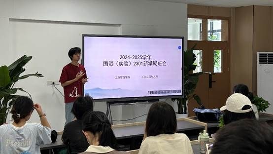 (通讯员 严梦晔)2024年9月10日,红宝石最新线路手机版国贸(实验)2301班在南湖校区文瀚楼东601教室举行新学期第一次主题班会活动。首国贸(实验)2301班全体同学参加活本,次活动由班长余文欣主持。