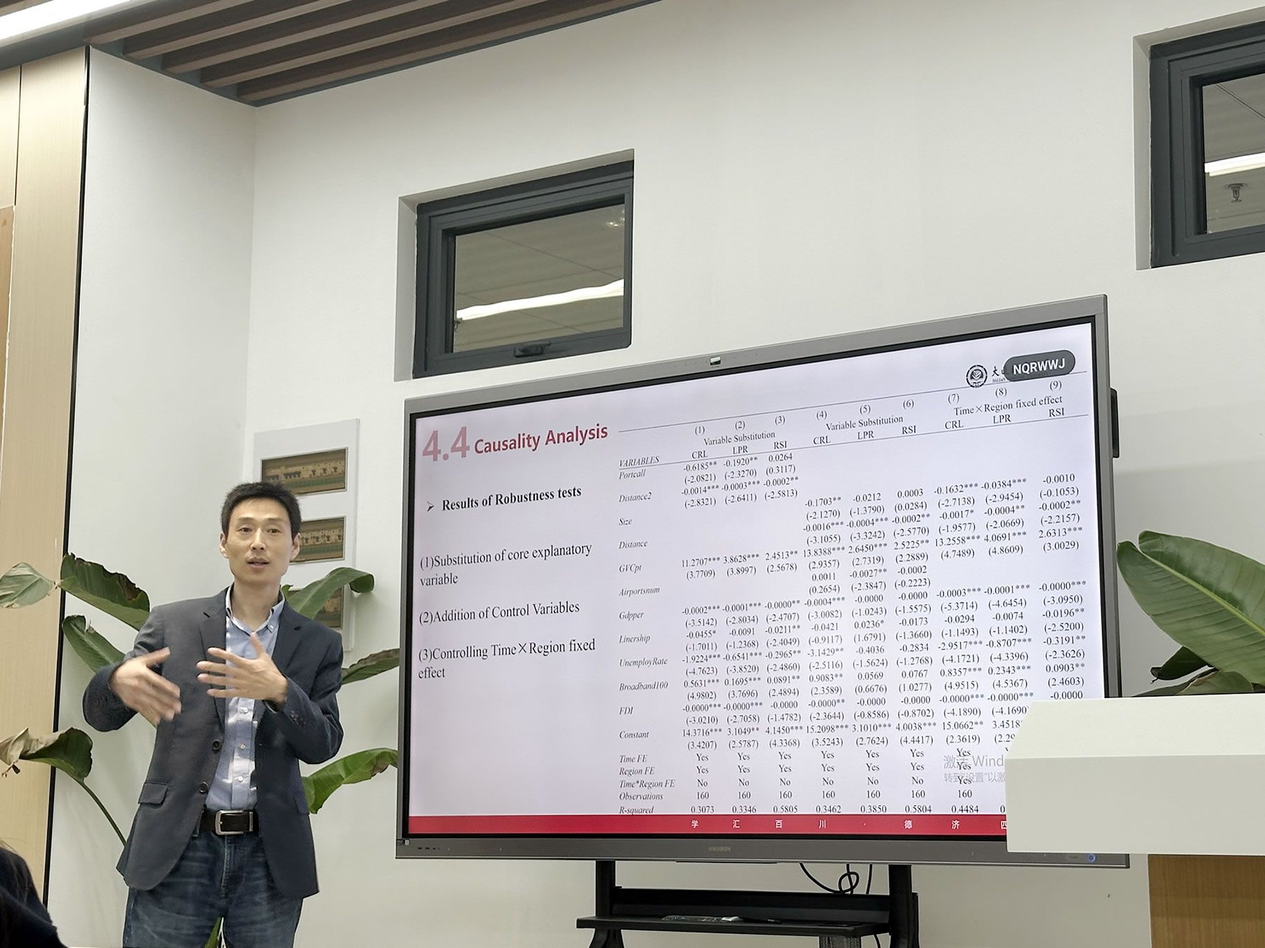 刘家国教授深入探讨在红海危机下全球港口韧性评估及提升策略,基于2016年1月1日至2024年7月22日AIS船舶定位数据,运用多元机器学习方法全面剖析全球主要港口韧性表现,同时采用实证方法深入分析了港口规模、靠近红海以及腹地参与全球价值链对港口韧性的影响。刘家国教授结合自身科研和工作实践经历,引导同学们多关注时政热点,并将时政热点与自身科研相结合,激励大家写出更多扎根中国实际、对国家和社会有益的优秀文章。