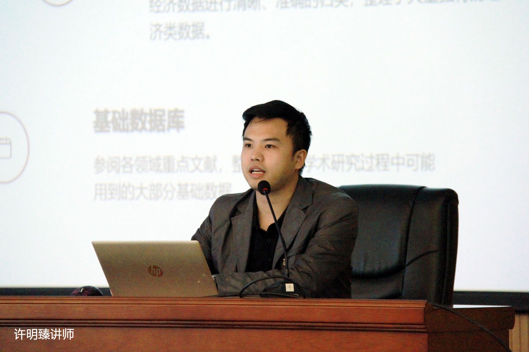 在师生热烈互动后,讲座进入第二阶段——“AI大模型赋能财经学科建设”专题讲座。石松博士分享了基于大语言模型的财经文本实证研究前沿及CNRDS财经数据平台实践案例,深入剖析了NLP与大模型、中文财经文本实证研究及爱文本(AITEXT)智能文本分析系统的应用场景。紧接着,许明臻讲师则详细介绍了CNRDS数据库及热门专题数据,