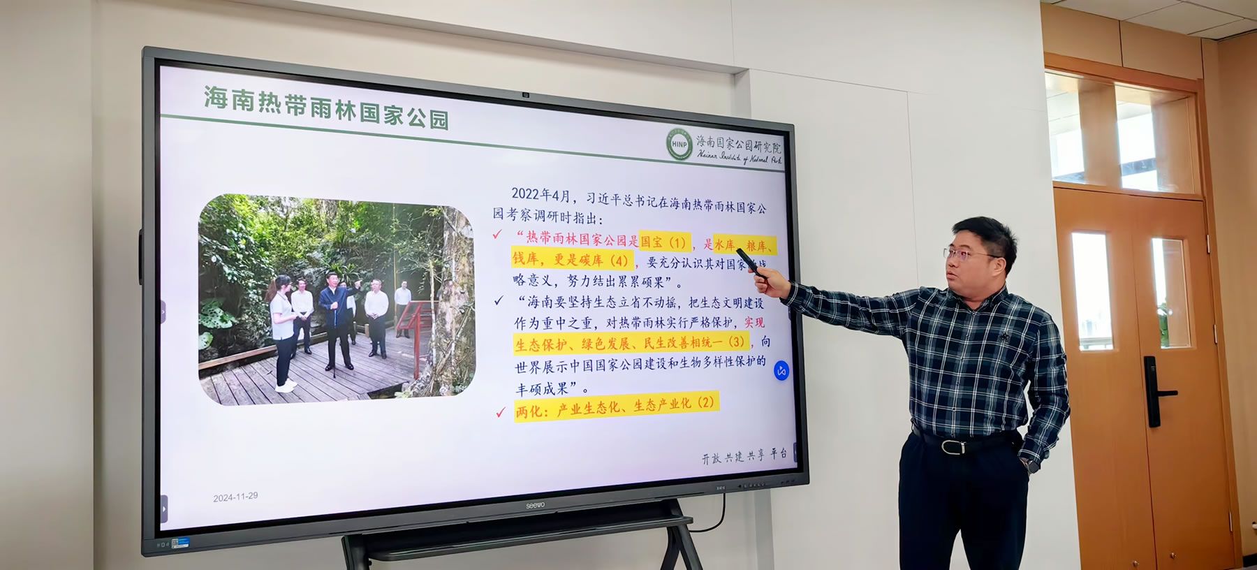 (通讯员于明亮)2024年11月29日上午,我院在文瀚楼601成功举办了一场主题为“全产业链视角下国家公园周边社区生态产品价值实现路径研究”的学术讲座。海南国家公园研究院研究员、海南大学副教授许昌斌博士担任主讲嘉宾。
